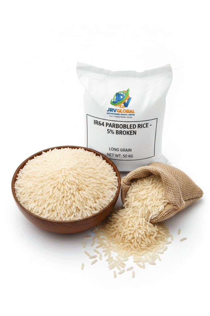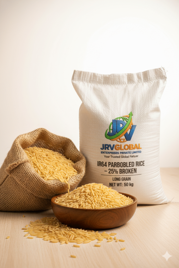 IR 64 Parboiled 25% Broken rice is an affordable and widely used long-grain variety preferred in bulk consumption markets. The grains are parboiled to improve nutritional value, shelf life, and reduce starch loss during cooking.